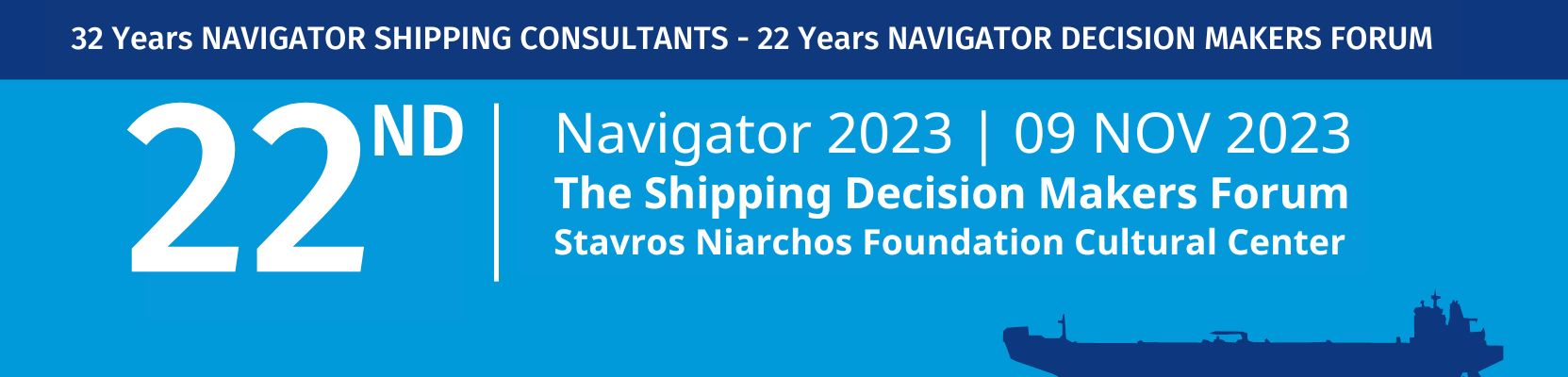 22ND NAVIGATOR 2023 – THE SHIPPING DECISION MAKERS FORUM consists of 3 closed events (March, May, October) for Forum’s sponsors and distinguished invitees/speakers from Greek and Foreign Shipping Companies, International Shipping Organizations & Embassies and the 22ND NAVIGATOR 2023 – THE SHIPPING DECISION MAKERS FORUM that will take place on Thursday, 9th of November 2023, at the Stavros Niarchos Foundation Cultural Centre (SNFCC), 09.30-14.00, where the main points discussed in the closed events will be presented.